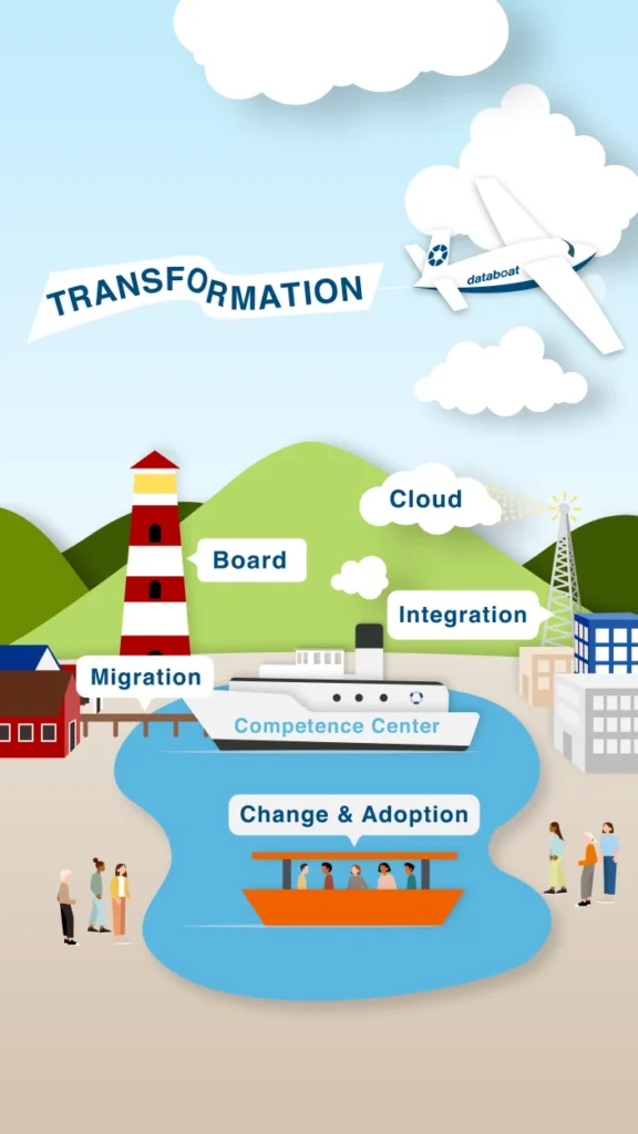 Im Jahr 2021 bündelt Databoat die Kompetenzen und Erfahrungen im Cloud Competence Center. Dieses konfektioniert und implementiert Lösungen im Rahmen eines abgestimmten Frameworks. Dabei verwenden wir modernste Entwicklungs- und Management-Werkzeuge. Die IT-und Cloud-Strategie setzen wir in Einklang mit der ausformulierten Unternehmensstrategie um.